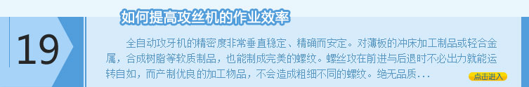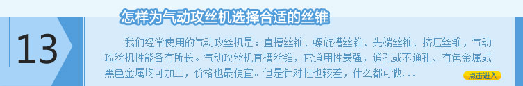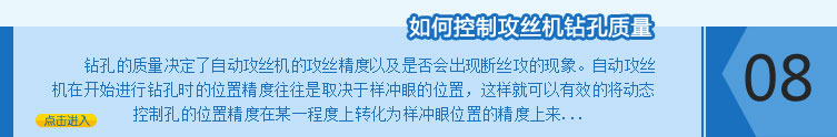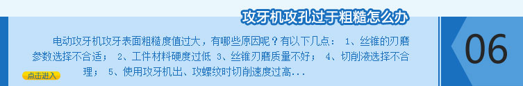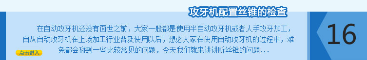 間斷檢查絲錐的鋒利程度。如遇到絲錐缺牙或粘屑、排屑不暢,根據情況應查看及更換絲錐。9、注意攻絲時的攻絲聲音,有聲音異常及時停機檢查。